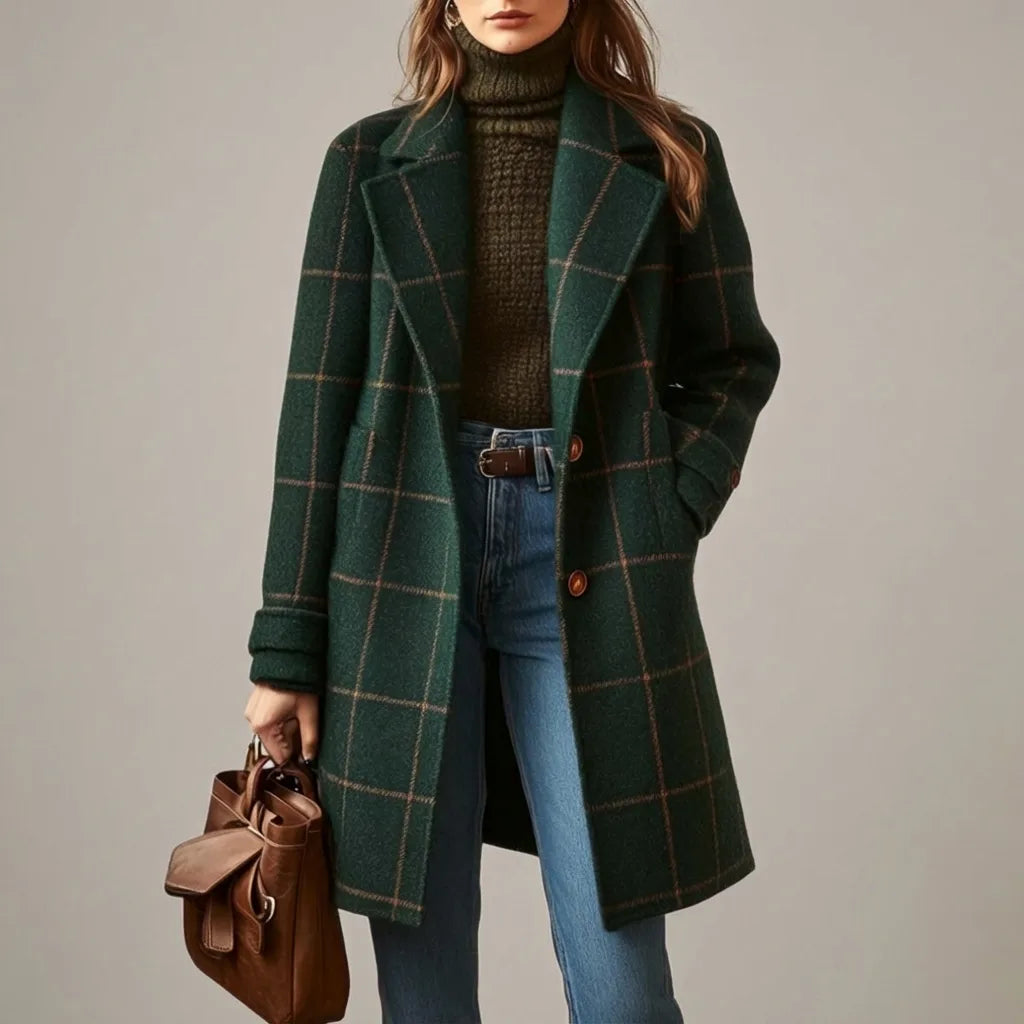 The Highland Willow Check Coat brings classic tailoring together with cozy sophistication. Crafted in a rich, structured fabric with a timeless check pattern, this coat adds depth and character to any outfit. The relaxed yet polished silhouette layers beautifully over knits, while the clean lapels and button-front design keep the look refined and versatile. It’s the kind of coat that never goes out of style — dependable, elegant, and endlessly wearable.